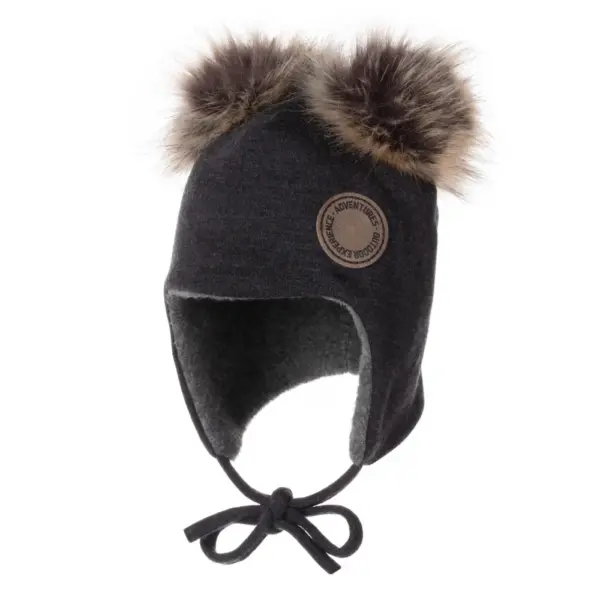 ✂️🧵 Croială / Design: căciulă cu strat dublu și acoperire frontală, cu două pompoane pufoase din blană artificială, oferind protecție împotriva vântului și frigului pentru frunțile delicate ale bebelușilor.