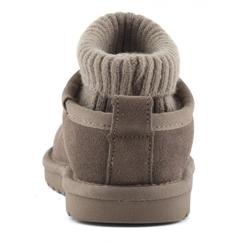 • Căptușeală: 50% lână naturală (WO) + 50% blană artificială (PL) – păstrează picioarele călduroase și confortabile