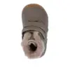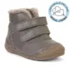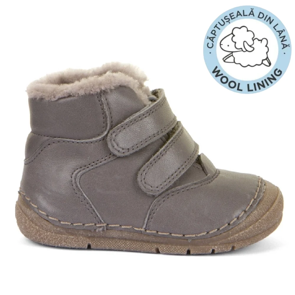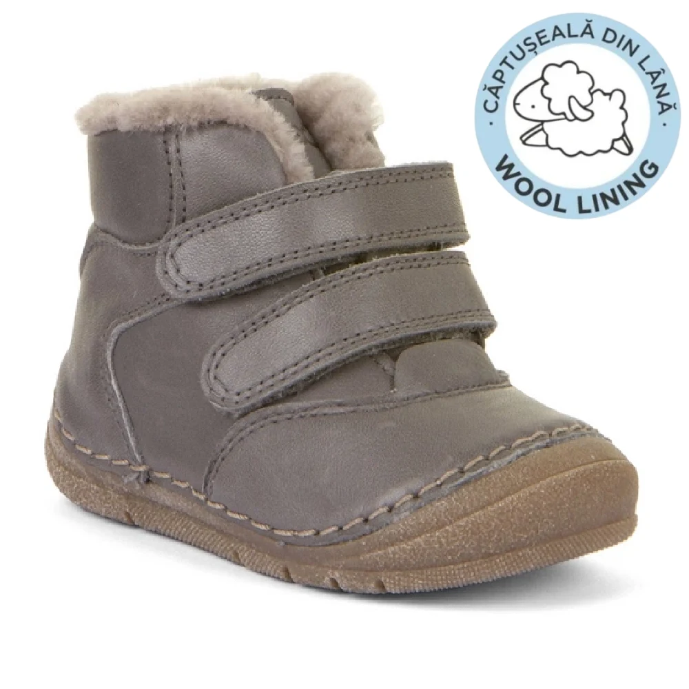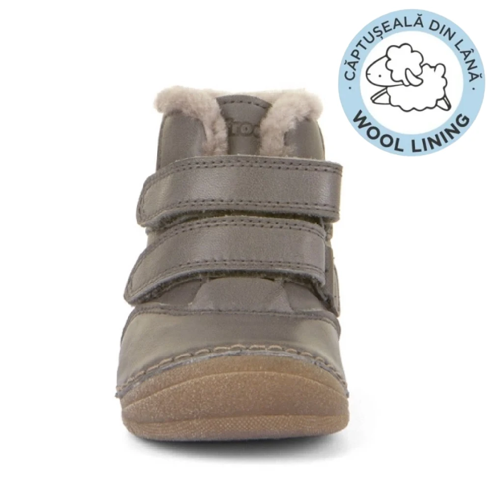 Piele naturală certificată LWG, fără crom VI, durabilă și confortabilă, cu blană naturală de oaie pentru căldură optimă. Cu tradiție: Froddo este pe piață de peste 30 de ani, recunoscut pentru calitatea și ergonomia încălțămintei pentru copii, recomandată de pediatri și ortopezi. Alte certificări: REACH, ISO 9001, EN ISO 20344 / 20347, teste pentru confort și siguranță, colaborări cu organizații pentru sănătatea copiilor.