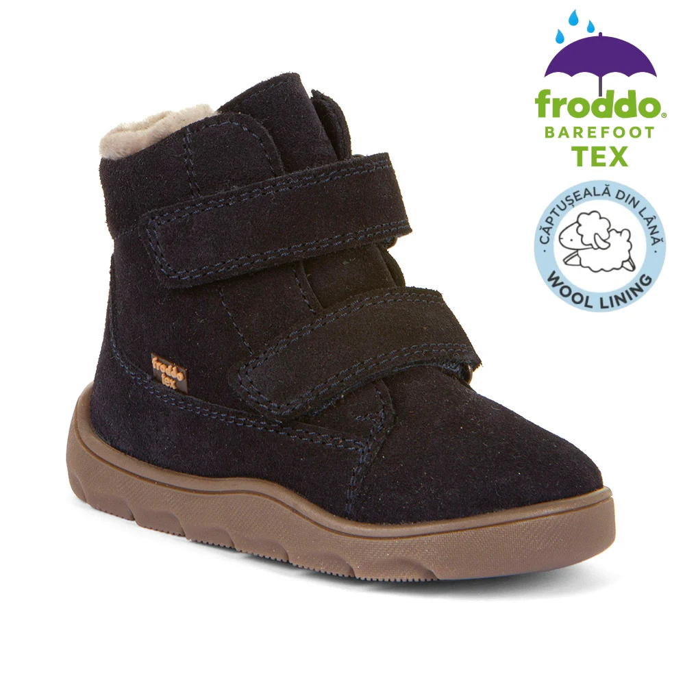 Cizmele oferă flexibilitate excepțională, confort termic și impermeabilitate reală datorită membranei TEX. Fac parte din linia Barefoot Up, creată special cu spațiu suplimentar pentru degete și partea superioară a piciorului, imitând mersul desculț. Extrem de ușoare și respirabile, perfecte pentru joacă activă, mers și explorare. Froddo folosește doar materiale sigure și procese sustenabile.