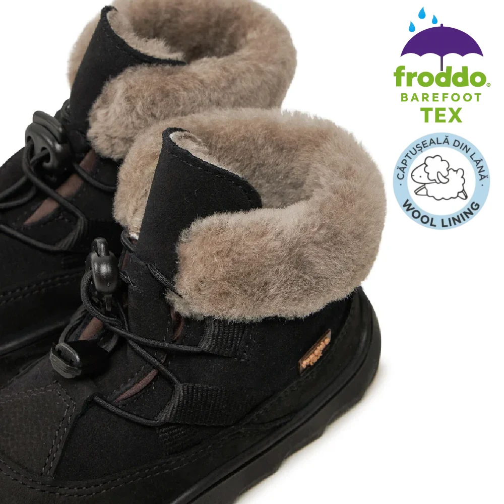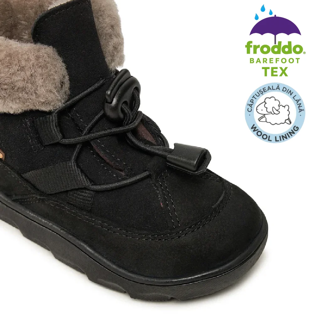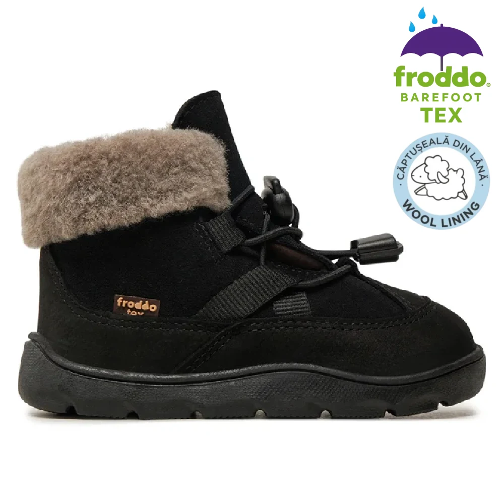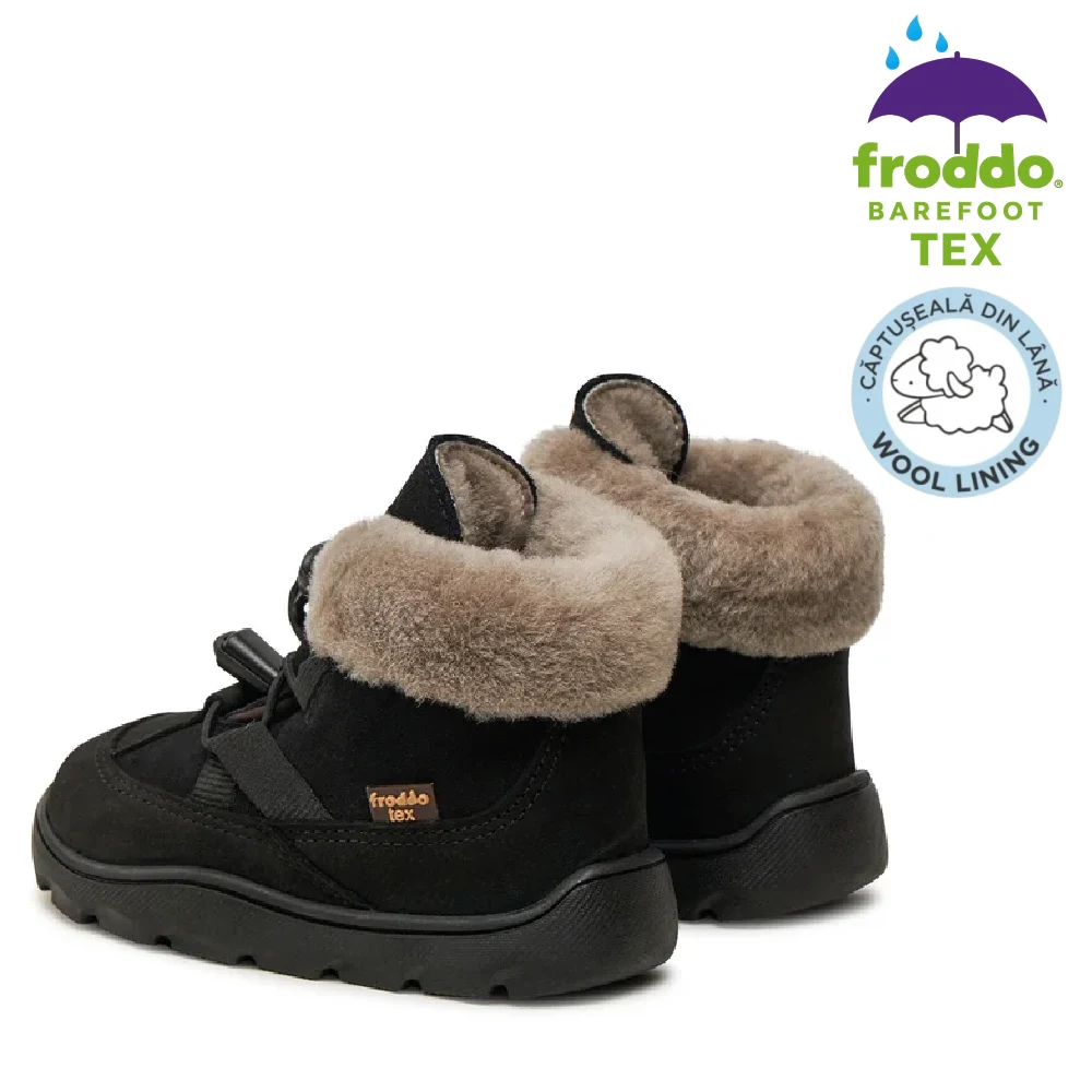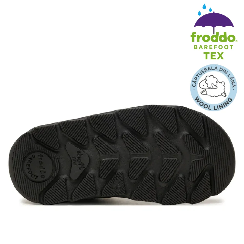 Cizmele oferă flexibilitate excepțională, confort termic și impermeabilitate reală datorită membranei TEX. Fac parte din linia Barefoot Up, creată special cu spațiu suplimentar pentru degete și partea superioară a piciorului, imitând mersul desculț. Extrem de ușoare și respirabile, perfecte pentru joacă activă, mers și explorare. Froddo folosește doar materiale sigure și procese sustenabile.