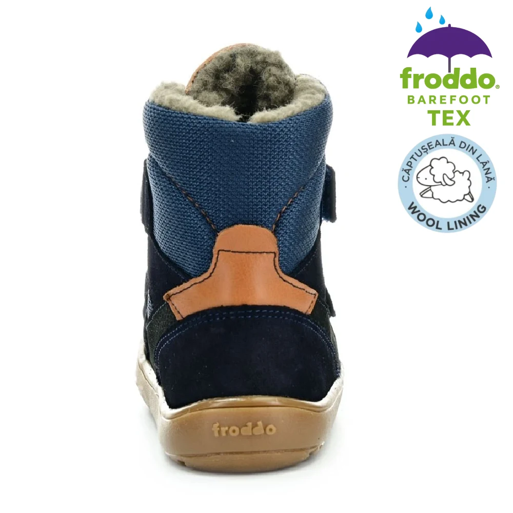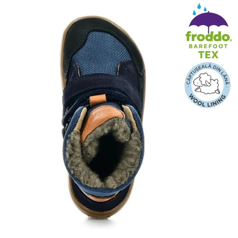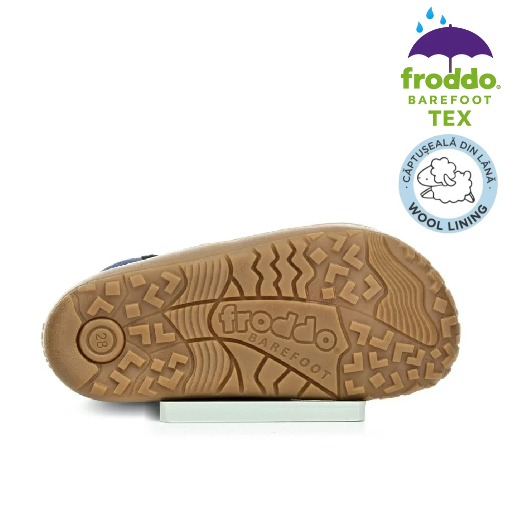 Cizmele oferă flexibilitate excepțională, confort termic și impermeabilitate reală datorită membranei TEX. Fac parte din linia Barefoot Up, creată special cu spațiu suplimentar pentru degete și partea superioară a piciorului, imitând mersul desculț. Extrem de ușoare și respirabile, perfecte pentru joacă activă, mers și explorare. Froddo folosește doar materiale sigure și procese sustenabile.