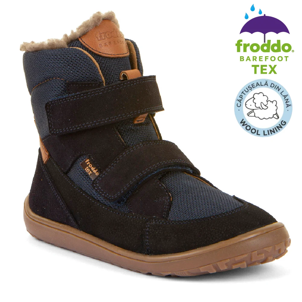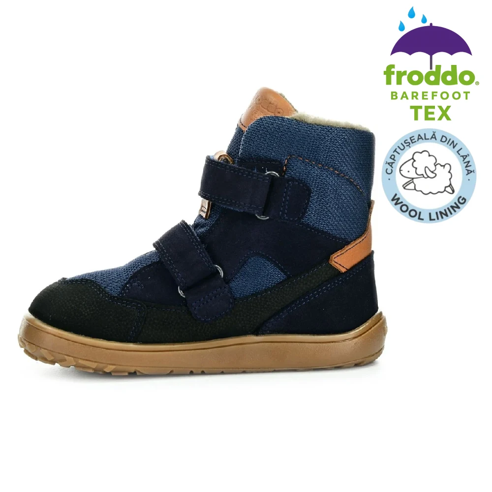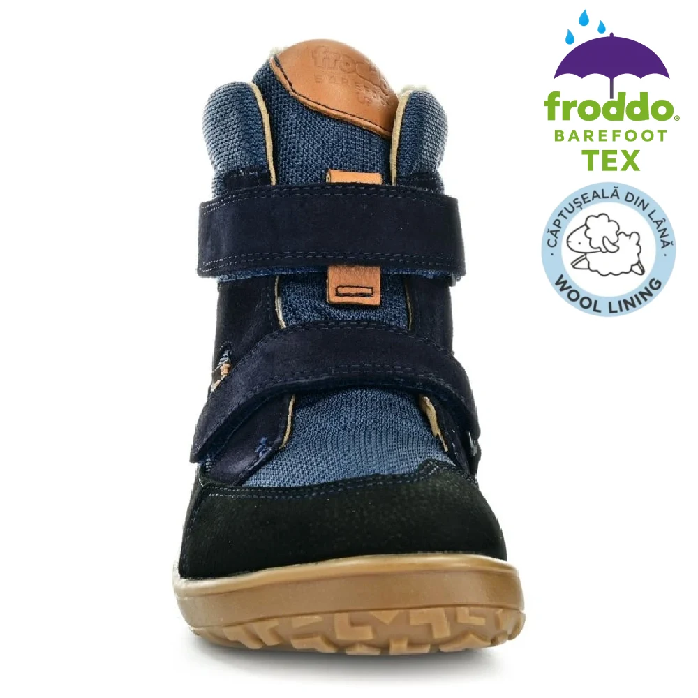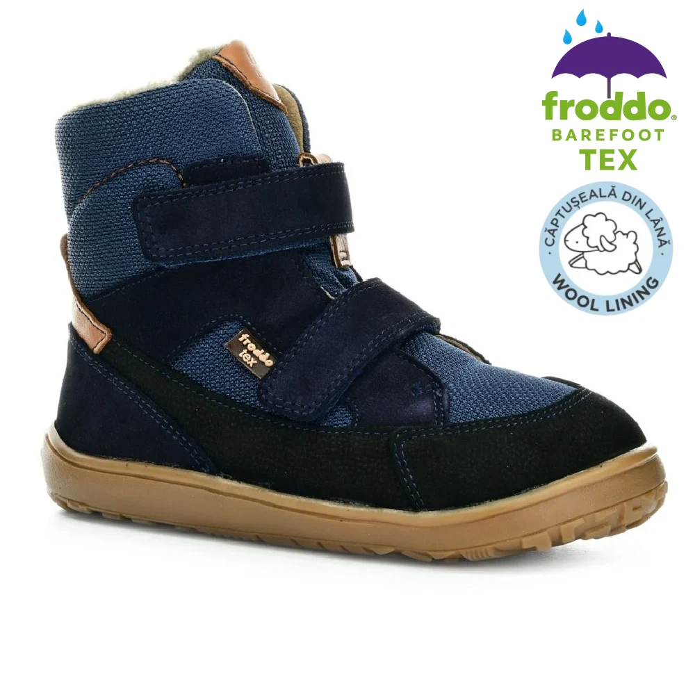 Cizmele oferă flexibilitate excepțională, confort termic și impermeabilitate reală datorită membranei TEX. Fac parte din linia Barefoot Up, creată special cu spațiu suplimentar pentru degete și partea superioară a piciorului, imitând mersul desculț. Extrem de ușoare și respirabile, perfecte pentru joacă activă, mers și explorare. Froddo folosește doar materiale sigure și procese sustenabile.