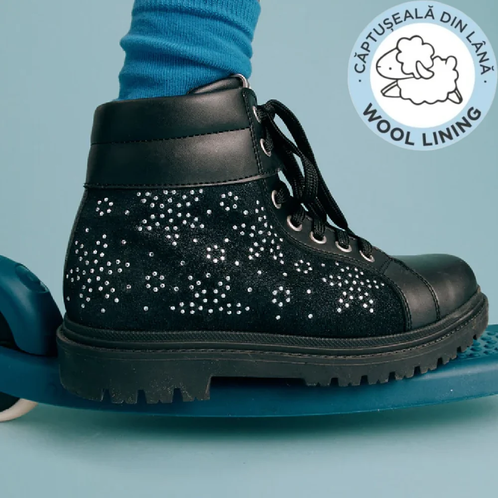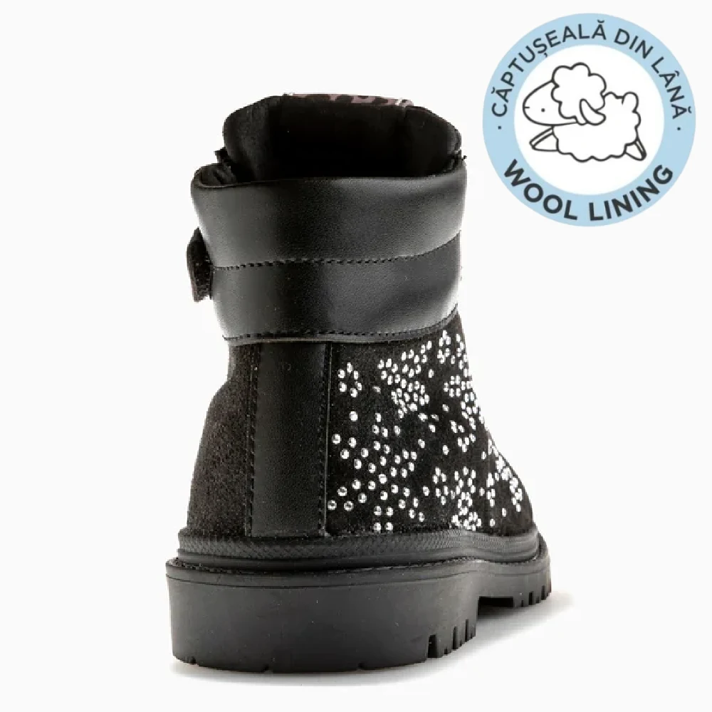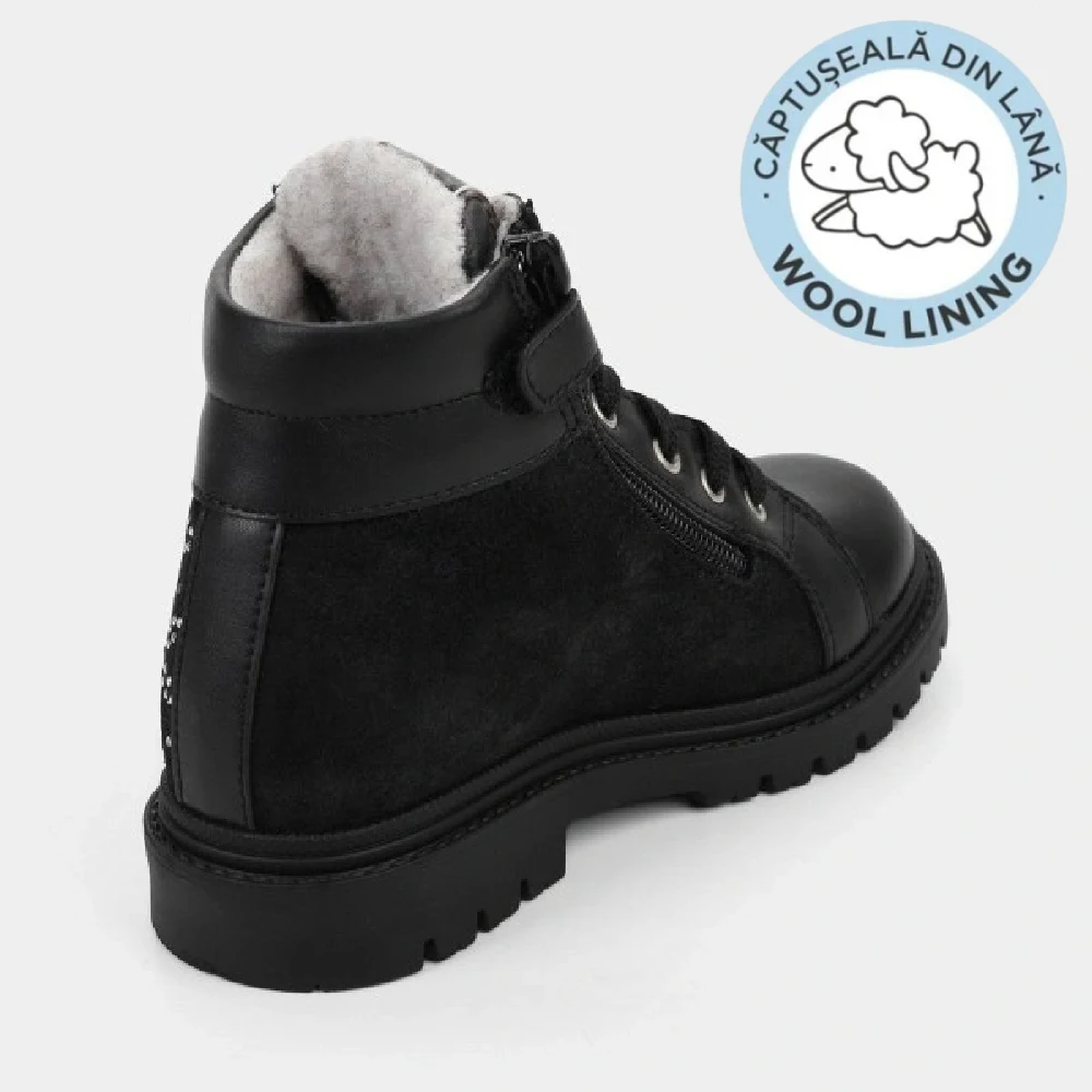 🌡 Căptușeală din lână naturală moale, respirabilă, antialergică și cu termoreglare automată – păstrează piciorul cald fără transpirație.
