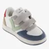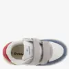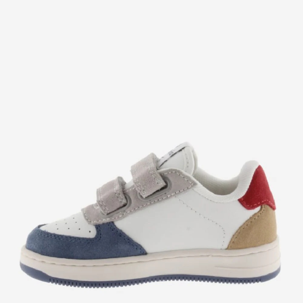 Exterior: combinație de materiale rezistente cu finisaj neted și inserții tip suede multicolor, cu textură ușor catifelată, care oferă durabilitate și un aspect modern, sport.